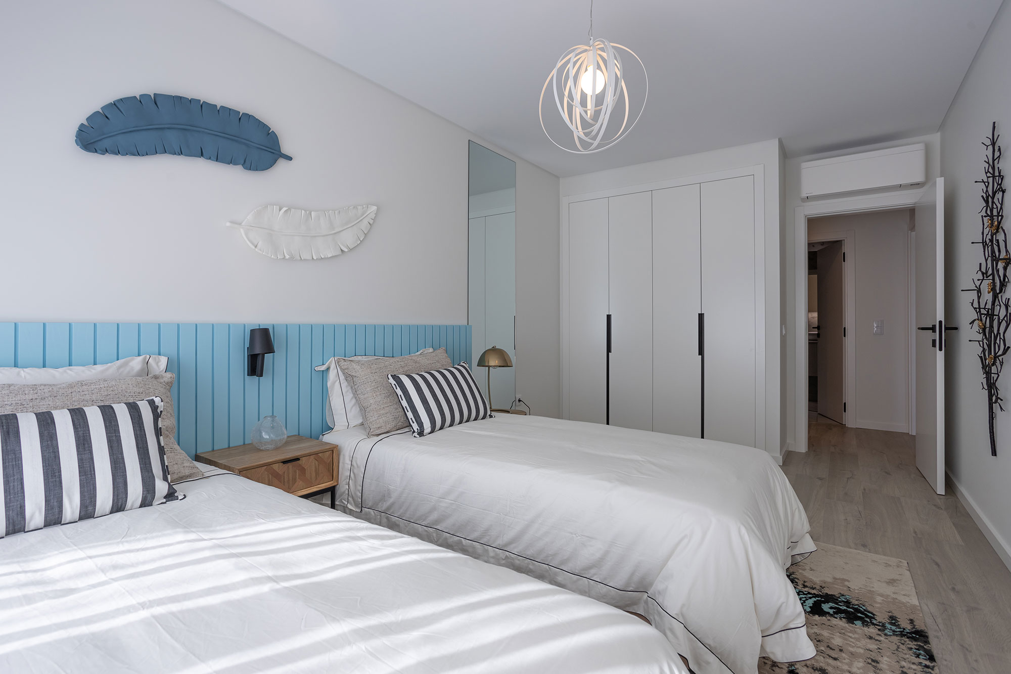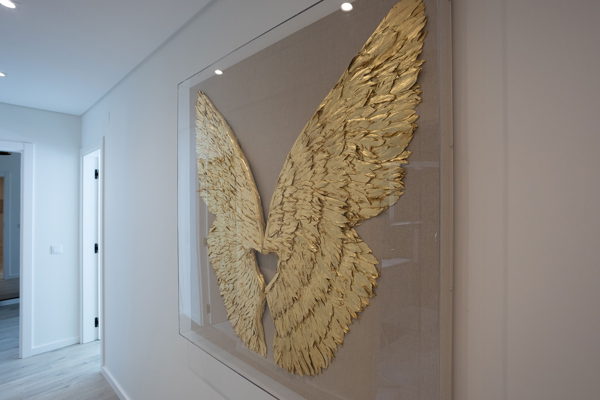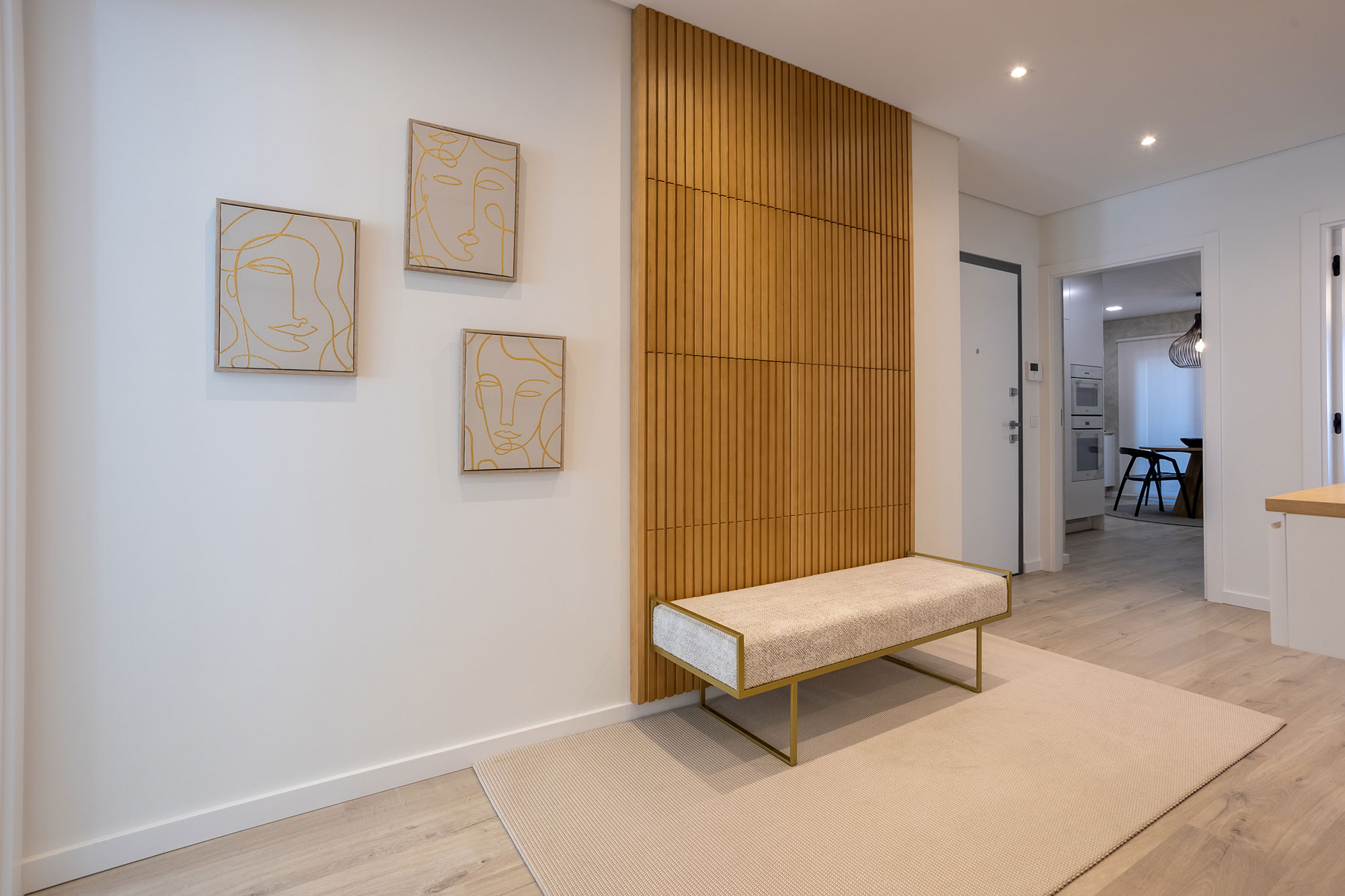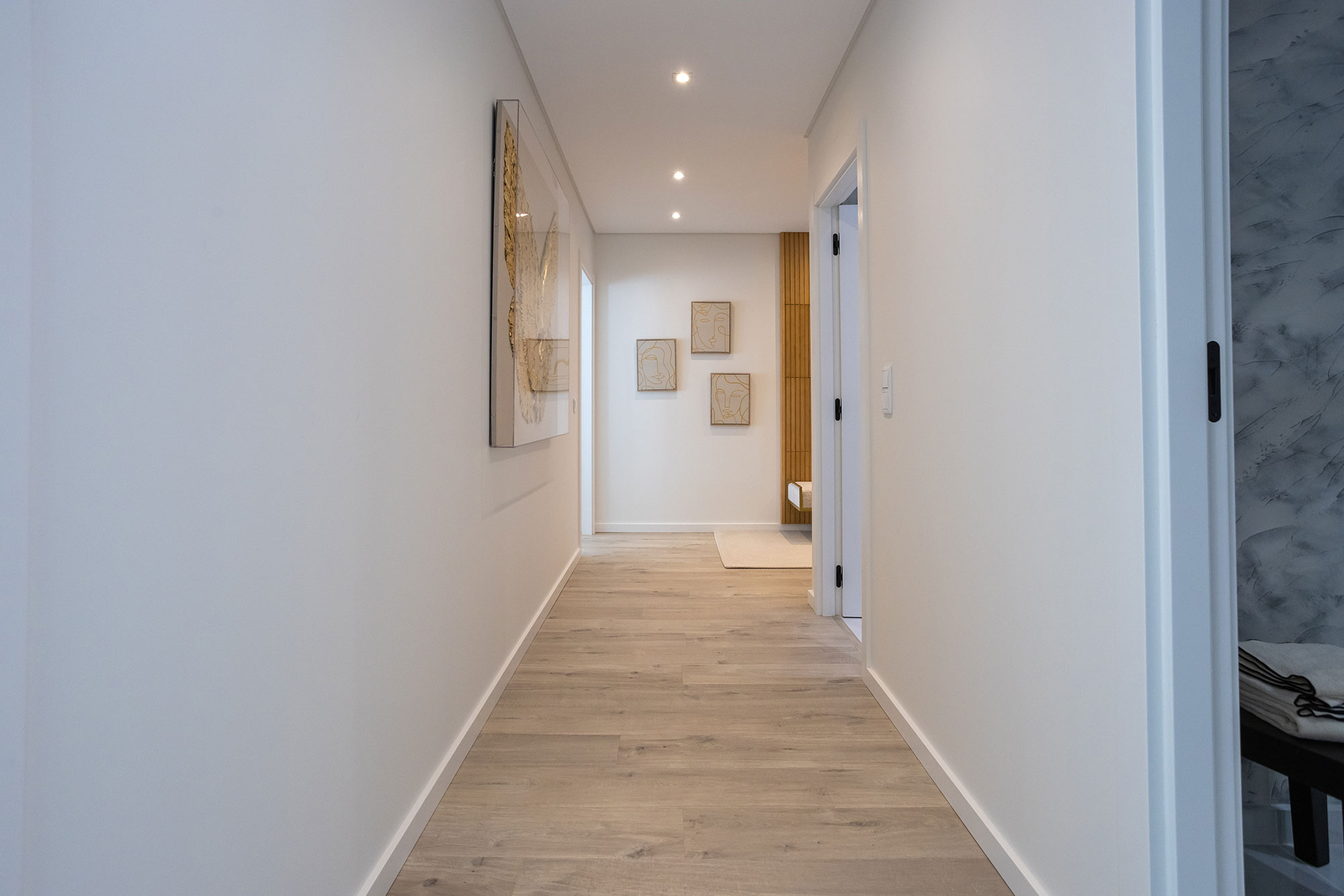 Portas interiores lacado a branco semi brilho em madeira maciça e Favo alveolar com as faces lacado branco em MDF 5mm.